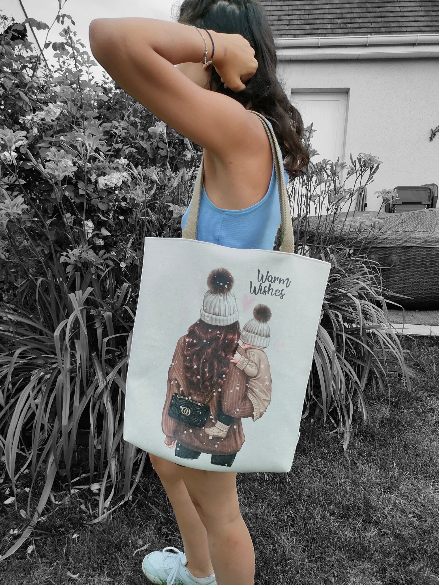 Sac en simili cuir avec panneau femme et enfant .